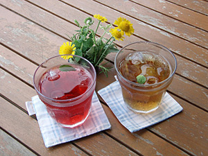 早速テラスでハーブティーをいただきながら、ここで何が出来るか、永嶋さんに聞いてみました。なんだか色々体験出来るそうなんですが、さすがに全部はできないので、今回は、ヤンが虫除けスプレー、女子はリース作りにチャレンジすることになりました。