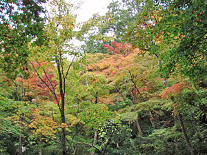 お目当ての「もみじ園」は、この中野邸のお庭部分という事で、まずは、こちらから探索です。いや~なんてったって驚いちゃうのは、その広さ!一口に庭なんて言ってますけど、どんな健脚の持ち主でも30分やそこらじゃ回れませんよ。圧倒的な広さです。しかもそのお庭には、様々な樹木や建物(今は面影のみ。)が配置されていて、このお庭が一つの芸術作品のようです。もみじだけでも100種類以上が植えられていて、紅葉の様も一様ではありません。まだみずみずしい若葉のような紅葉もあれば、今にも燃えだしそうな真っ赤な紅葉もあります。それらが渾然となって、一つの景色になるように設計されているんだそうです。すごいね&偉いね!中野様!