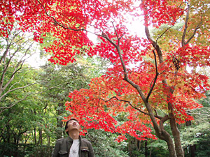 「紅葉まつり」は、今月25日まで開催です。紅葉狩りを楽しみながら、どうぞ中野邸美術館にも足を運んでみてください。時を忘れ、古き良き時代を懐かしみながら、様々な美との出会いを楽しめますよ。邸内からお庭を観賞する際には、理事長に立ってる所を発見されない様に、座って行儀良く観賞しましょうね。