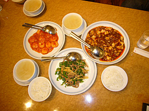 四川飯店でヤンのお気に入りと言ったら、完全に「陳・麻婆豆腐」です。これを食べたら、他の麻婆は麻婆じゃなくなる!っつ~か、今まで食べてきたのは、なんだったんだ?って思わせる程の衝撃の一皿です。ほかにもエビチリ、チンジャオロースの四川飯店黄金メニューをオーダーです。実に3年ぶりの陳・麻婆豆腐でしたが、その美味さにいささかの翳りもなっかったです!やっぱ、抜群に美味い!!ちっと涙出たもん。これだけ食べに、わざわざ村上まで行ってもいいな~。それにしても、我々のカジュアルさはなんだ?なんだか、足元のスリッパに若干恐縮しながら、おいしくいただきました。