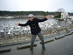 さらに海沿いをしばらく走ると、おもしろい所があるんですよ。荒川の河口付近なんですが、隠れた(?)白鳥の湖を発見。瓢湖みたいに、餌を売ってたりはしないみたいなんで、自分で持って行っら餌付けを楽しめますよ。けっこうな数がいて、ちょいとビックリします。詳しくは自分で探してみてください。まぁ、すぐわかると思いますけど・・・。