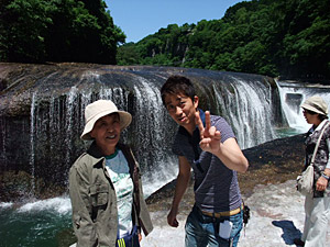 滝の周辺には白線が引いてあって、危険地帯を知らせているんですが、それでも滝壺との距離10m弱!さらに、遠目にはわからなかったんですけど、この滝多重構造になってるんですね!裂け目の内部に、さらに3~4段の段差があって、かなり複雑な水流が形成されているようです。まぁ、それだけに魅力的なんでしょうな~。ロケ当日も沢山の観光客、カメラマンで賑わっておりましたよ。ここからさらに3分位歩くと、第二瀑布「鱒飛の滝」もあります。趣は違えど、こちらも迫力アリ!ナイアガラはないけど、「ガラ」程度はあるかな・・・。