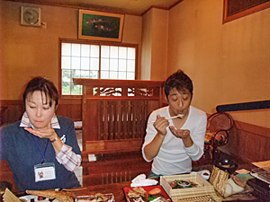 身の引き締まる思いでの見学も終わり、今度は腹ごしらえに行こうって算段。またまたガイドの小林さんのお勧めにすんなり従ってみることにしましょう。なんでも兼続と上杉景勝も食べたであろう、出陣前の「お発ち飯」なるものがあるそうです。そりゃ~是非に!ってんで、お発ち飯を頂きにお発ちになる我々でございました。