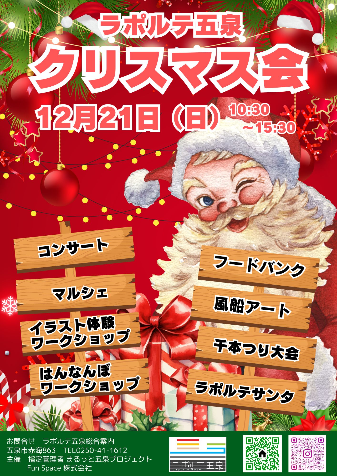 12月21日(日)はラポルテ五泉で、「クリスマス会」を開催します。🎄 当日の会場には、クリスマスマルシェ、コンサート、当...