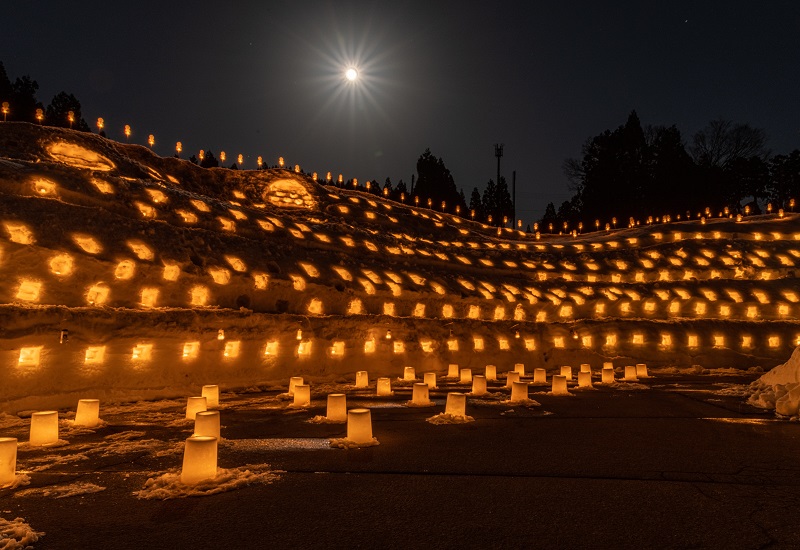 上越市内7会場の沿道に約10万本ものあかりがともるイベントです。
