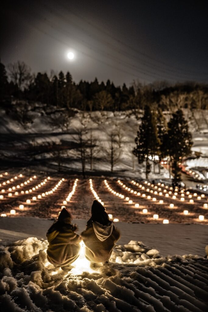 キャンドルのあかりと雪像が織りなすあたたかな雪の世界を堪能してください。🕯