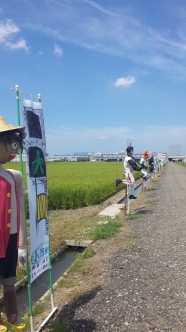 地域の子供会、自治会等が手がけた約30体の案山子が展示されドライバーの視線を集めています。地域の活性化や、案山子の制作を...
