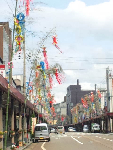 JR十日町駅前、駅通り商店街に恒例の七夕の飾りがアーケードにズラリ立ちました。画像は晴天ですが、この七夕飾りにはLED電...