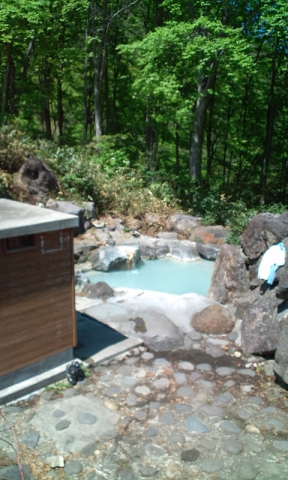 新緑が眩しい妙高山のふもとの燕温泉。その温泉街を抜けて 登山道を200メートルほど登ったとこにある源泉かけ流しの開放感あ...