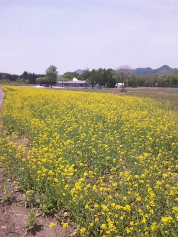 '津南町にある、農と縄文の体験実習館「なじょもん」のエリア内に黄色い菜の花が咲いてました。縄文時代の竪穴式住居や見晴台、...