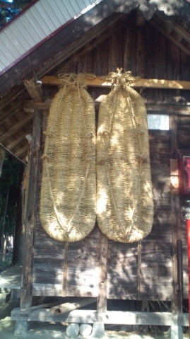 津南町でビックリするものを発見しました(^-^)v貝坂集落の神社で発見しました(^-^)vこの大きいわらじ!誰が何のため...