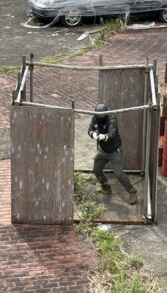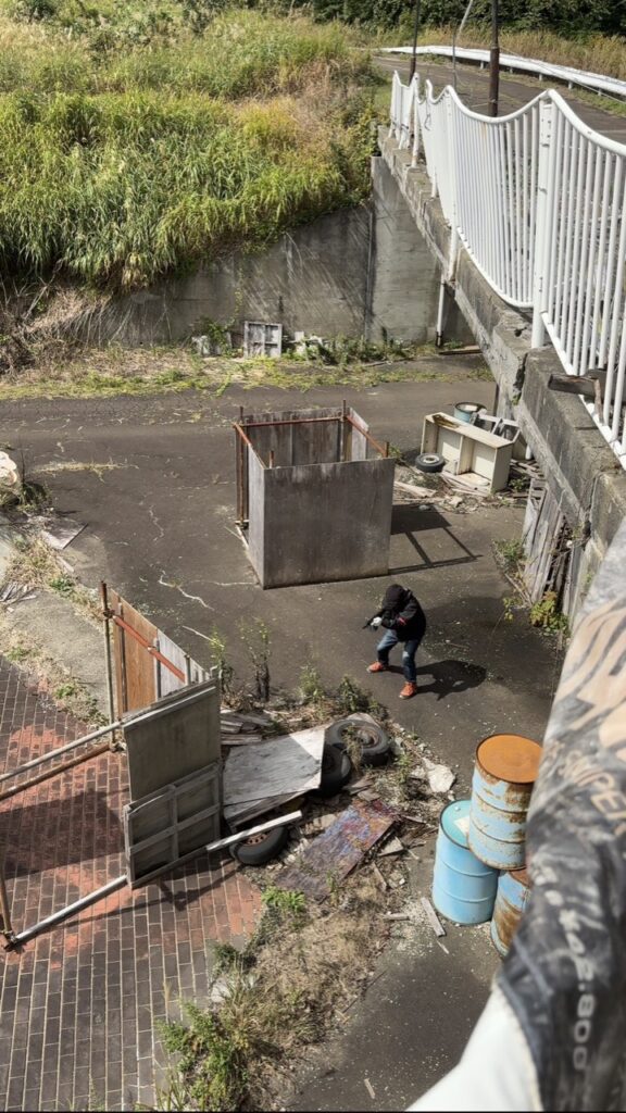 「廃墟となったホテルを改装したサバイバルゲーム用のフィールドです。建物内は今は使用していないんですが、建物周辺の敷地にバリケードを作って遊べるようになっています。」