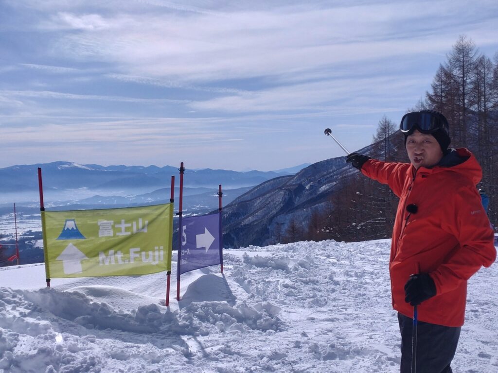 8.5km滑ったその後、もう一回頂上から滑って麓のレンタルショップの前に戻ると、すでにリタイヤ済みのIこうさんから