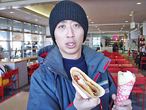 ヤン流正しい舞子のしめ方は、日帰り温泉に入った後の「マリオンクレープ」。体が疲れてっから、普段甘いもん食えないヤンでも美味いと思っちゃうんですよね。口の周りをクリームだらけにして帰路につくヤン一行でありました。