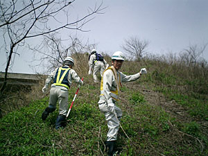 NEXCO東日本では、この時期に「A点検」という高速道路の点検を一斉に行っているんです。車での巡視では見落してしまいそうな所までフォローする為、なんと徒歩で調べてまわるんですと!一斉にと言うからには、ほぼ全社員一丸となっての調査・点検です。女子も例外ではなく、普段は受付嬢のあの子まで、作業着に長靴での作業です。こりゃ~、実に行かんきゃね~ろ!
