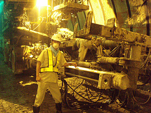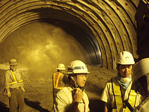 到着しましたのは薬師岳トンネル。もちろん現在工事中であります。そもそもトンネルってどんげして掘ってるんでしょうか?なんとなく想像してたのは、サンダーバードみたいなドリルマシンでゴリゴリやってんのかな~って思ってましたら、ホントにありましたよ!さすがに、そのまんまサンダーバードって訳じゃないですが、見たことない重機のオンパレードです。掘った後壁面にコンクリートを吹き付けるマシン、鉄の杭を打ち込む(?)マシン、巨大な型枠マシン等、男子ならテンション上がる景観が広がっています。一般の方も見学できるそうなんですが、子供達なんかは凄く喜ぶらしいですよ。なるほど、こういうマシン&職人さんの力で掘り進めているんだと納得いたしました。
