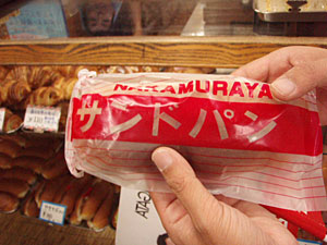 二軒目は、野だめさんを誘って、同じく燕市サンロード宮内内にある「中村屋」さんに参りました。目印は、大量に陳列された「ディズニーグッズ」です。推薦者は、こみどりさん、クロスワンさん。なんと申しましょうか、昔なつかしのパン屋さんです。パンのラインナップもそうなんですが、値段も昔のまま!調理パンだって、100円しないんですよ。んで、なおかつ美味い!そして、なんと言っても中村屋名物といえば、「サンドパン」。なんというノスタルジックなパッケージでしょうか。いい子にしてると、たまに買ってもらえるあの美味しいパンですよ。感動しちゃった!