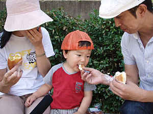 近所の公園で、本格的に味比べっす。評判のパンがズラリ並んだ光景は、まさに宝石箱!どのパンもやっぱ美味しい!美味さのベクトルが一方向じゃないから、いちがいにどれが好きって言えないんですよね。こうなったら、体裁や世間体に縛られない、この2歳のぼうやに判定してもらうしかない!中越地区No.1のパンはどれ?!