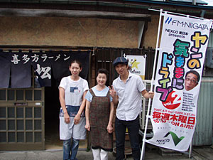 さて、朝10時に到着して最初に何をしたかというと・・・やっぱラーメンでしょ!なにせ市内に120軒のラーメン店があって、早朝からお店やってる所もあるからね。10時なんて、もうランチタイムですよ。んで、どうせなら隠れた名店を探せって事で、スタッフ全員でリサーチしたところ、気になるお店を発見!実はヤンも気になっていた店でした。喜多方ラーメンの有名店「ばんない食堂」と言えば、聞き覚えのある人も多いはず。今日は、そのお隣の「松食堂」におじゃまします!