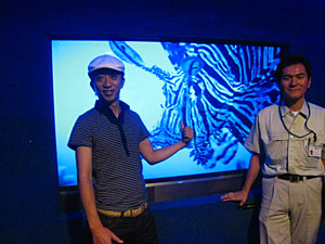 同じく4階には、なんと水族館もあるんでっせ!!本物の魚が泳いでいるわけじゃ~ないですけど、東京湾に生息する魚や、水族館ではなかなか見る事が出来ない鯨やイルカを映像で楽しめます。映像とはいえ、館内は薄暗い照明で演出され、モニターも水槽のように壁に埋め込まれているんで、本物の水族館みたいですよ。しかも、同じ水槽の前にいても、違う魚を鑑賞できるって利点もあり。椅子に座ってゆっくり水族見物しましょうよ。もちろん、こちらも入場無料!