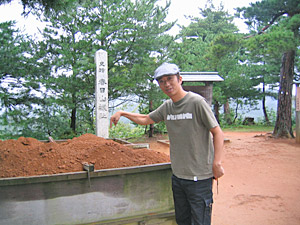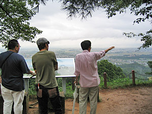 壮大な歴史スペクタクルを拝聴しながら、いよいよ山頂到着!ここからの眺めを、当時の謙信公も見ていたかと思うと感慨深いもんがあります。ただ、この春日山城、風雨の影響で年々低くなっているそうです。こりゃいかん!って事で、山頂には、登山者が持ってきた土が蓄えられております。折角の歴史遺産大事にしたいもんですよね。
