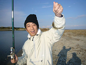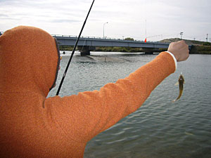 開始10分で、ヤンが最初のハゼを釣り上げるも、その後音沙汰なし。たま~に釣れるのもフグのみ。ハゼだけをカウントしてると大惨事になりそうなので、一応フグもカウントします。制限時間2時間の半分経過しての途中経過、ヤン2、S野氏2、S田氏1、T井氏0という展開。なんだか全然釣れないんだよね~。ホントはもっと釣れるはずなのにな~。