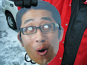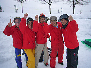 決戦の場は、関越道・小出IC降りてすぐ、県立響きの森公園。ここで、リスナー参加者の「直下り(ちょっかり)パパ」&「その2」君と合流です。二人ともボーダーなので、雪には馴れたもん。戦力として期待できそうです。その他のメンバーは、S田上等兵&いじわるDのS谷氏。こりゃ~ひょっとしたら、ひょっとするかもしんない予感です。