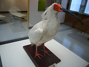 お邪魔しましたのは、「トキの森公園」にある「トキ資料展示館」。なんと、取材翌日がリニューアルオープンというめでたい日。一足早くご案内いただきました。資料展示館の中には、朱鷺剥製や骨格標本、朱鷺を自然に帰すための取り組みの様子などが、わかり易く展示してあります。ご存知かと思いますが、今年から実際に朱鷺の自然放鳥がはじまります。今までは、わりかしネガティブ(?)な表現だったところが、そんな状況の変化をうけて、これからを見据えたポジティブな表現・展示にリニューアルされたそうです。