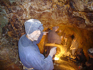 続いての佐渡は、佐渡金山です。もう佐渡観光のエースと言ってもいい位メジャーな観光施設であります。しかしながらヤン、いまだ一回も行ったことがない。佐渡金山には何種類かコースがあって、それぞれ違った趣を味わえるんですが、そんな事情もあって、今回は一番ベタ(人気)な宗太夫鉱コースを探索してみます。蝋人形がいて、当時の模様を再現ってあれですよ。坑内に入るとひんやりしていて、照明の具合もやや不気味。雰囲気としては、お化け屋敷の風情です。しばらくはパネルで、金山の歴史などを振り返る展示になっていますが、歩いて10分もするといましたよ!例の奴らが・・・。ぼんやりライトアップされた蝋人形が、唐突にお出ましやがります。当時の過酷な労働の様子を表現しているせいもあってか、やっぱ少々怖い。お化け屋敷ほどではないにしても、やはり不気味ではあるかな。女の子と一緒に行ったら楽しいでしょうね。(ハプニング狙いで。)今年からの新コースも始まるそうなので、見ごたえさらにアップの佐渡金山でございました。