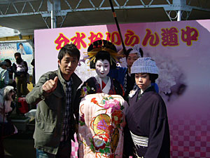 分水のメインストリートは、すでに露天が立ち並び、すっかりお祭りムード。沢山の方が詰め掛けておりました。露天では地元の特産品や世界初の「銀杏アイス」やら売っておりまして、スゴイ賑わいです。ヤンはフキノトウのアイスをいただきましたが、これが旨い!あの独特の苦味もちゃんといたします。我々にはとってもおいしく感じたんですが、みおちゃんには不評でありました。他にも露天外には、おいらんの衣装を着れる体験ブースあり、おいらんと記念撮影が出来るコーナーありと盛りだくさん!かなり満喫いたしましたよ!