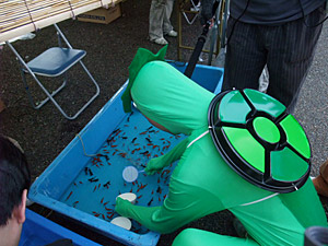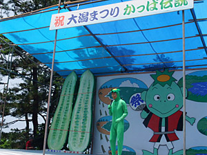 ところで皆さん、かっぱ祭りって聞くとどんなイメージ?かっぱがいっぱいルンパッパな感じじゃない?ヤンもそう思って、わざわざかっぱの衣装を装着していったんですよ。そしたら、かっぱなんて何処にもいない!広い会場に俺一人っすよ!まぁ、やっちゃったもんはしょうがない!このまんま楽しむぞ!