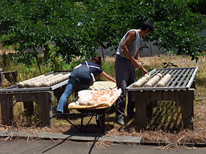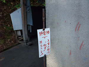 んなこんなでお邪魔しましたのが、北陸道・巻潟東ICから20分「新潟煙火工業」であります。専務の小泉さん(きんちゃん)に無理を言って、花火製造の様子を見学させてもらおうって魂胆です。広い敷地内には、工程ごとに分けられた製造施設が点在しています。もちろん火気厳禁であります。ちゃ~んと建物の前に「静電棒」ってのがあって、わずかな火の元も許さない体制です。う~む、なんだか緊張してきた!