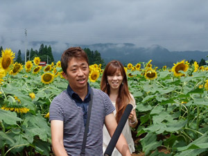 迷路の中はそれこそ一面のひまわり!背丈より高いひまわりの中を進んでいくんですから、ちょいと変な感覚にさえなってしまいます。ぜったいこのシュチュエーションでキスしてるカップル多数ですよ。ヤン気まチームも、後ろに続くおかぴーに変な妄想をしないように突き進みます。迷路突破の作戦はいたってシンプル。分岐点にきたら、ジャンケンで進路を決めます。ヤンが勝ったら左へ、おかぴーが勝ったら右ってなかんじ。しかしながらこれが意外に正解率高い!わずか2回程度のミスチョイスで、あっという間のゴールイン!
