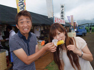 気になる制覇時間は・・・6分14秒!おかぴー圧勝で、ご褒美の焼きモロコシゲット!甘くておいしい焼きモロコシ。旨そうだったな~。広場には、飲食スペースやお土産も売ってるので、迷路の後にでもお楽しみください。