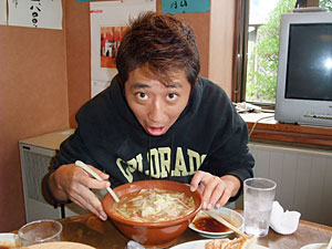 話を聞いていると、来年の新潟国体のホッケー試合場が城山運動公園とのことで、ホッケーの試合がよく行われているんだとか・・・。そういえばオリンピックで、女子ホッケー盛り上がったよな~なんて思いつつ、次の行き先は城山運動公園に決定であります。別れ際、ヤン気まのポスターを直売所に張ってもらう事を確約してもらい、安心してラーメンこまどりに向かいます。