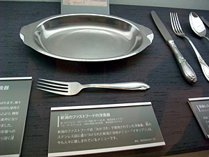 リニューアルした部分は、燕の町工場をイメージしているとの事で、まず最初の館は「日本の金属・洋食器展示室」でございます。その名のとおり、日本の金属加工の歴史から、明治以降の洋食器文化の展示まで、マニアックに展示されてます。考えてみれば日本人にとっての「食器」って、箸と茶碗くらいしかなかったんだもんね。んで、明治になってから洋食文化が入ってきて、当然洋食器を日本人も使うようになったと・・・。