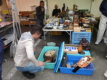 中年BOYS一通り会場を見て回ったあと、今週のお土産をこのフリマでチョイスすることに決定!またも個人戦で、それぞれのお勧めを一品ずつ購入することに相成りました!制限時間は5分!予算は500円!値段交渉は個人の裁量で!!では、先程の周回で目星をつけていた品目指して、走れ中年BOYS!!