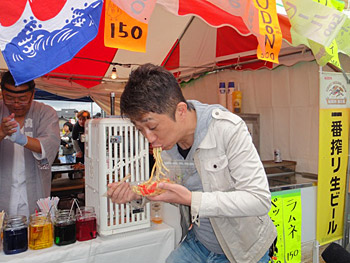 ただし、先程も言った通りこの日は物凄い人出!腰を降ろして弁当を食べる場所を探すのも大変っす。やっと見つけたランチスペースは、残念ながらトイレの前。匂いは気にならなかったけど、気分的にちょっとね・・・。でも、B級グルメ達はどれも美味でしたよ。