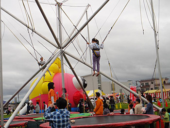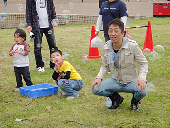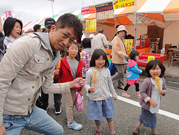 駐車場から歩き始めると、いきなり視界に飛びこんできたのは巨大なはしご車!高さ30mくらいあるんでなかろうか!柏崎の消防隊員の姿もみえます。当然子供たちが殺到しておりました。やっぱ単純にデカイもんて感動してしまいますな~。