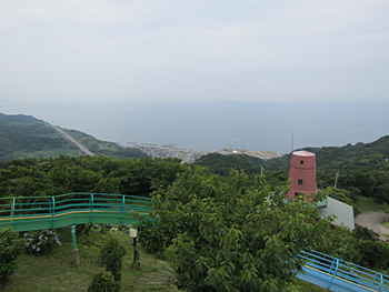 眼下には名立の街並みと美しい海岸線が一望でき、爽やかな潮風も体感できます!標高にして200~300m、海までの直線距離は1キロないんじゃないかな。