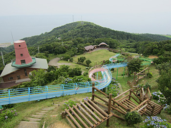 だけどここ、シーサイドって割にはシーサイドじゃないのよ。けっこうな山道を10分くらい登っていくと、海を見渡せる山の上にございます。ここは、「ビッグボブスレー」と「ローラースライダー」っていう遊具が2枚看板!さっそく体験してみましょう!