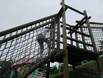 んじゃまず「ローラーコースター」に挑戦!簡単に言っちゃうと、なが~い滑り台なんだが、普通の滑り台とは構造が違う。無数のパイプが敷き詰められていて、お尻との接地面が回転するんで、通常の滑り台とはスピードが違う!めっちゃ早いのだ!!
